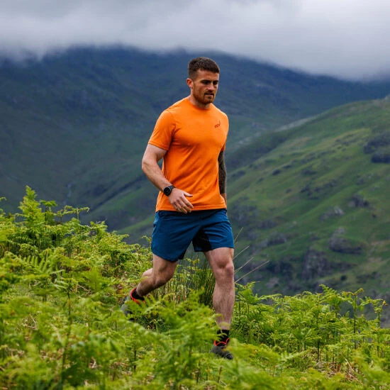 Die Shorts aus einer Mischung aus recyceltem Polyester und Elasthan sind leicht, feuchtigkeitsableitend und beweglich. Die Hand- und die stabilisierende Smartphone-Tasche machen diese Shorts superpraktisch. Schnell trocknendes und superleichtes Außenmaterial. Stretch-Materialien, Zwickel-Design und Seitenschlitz.